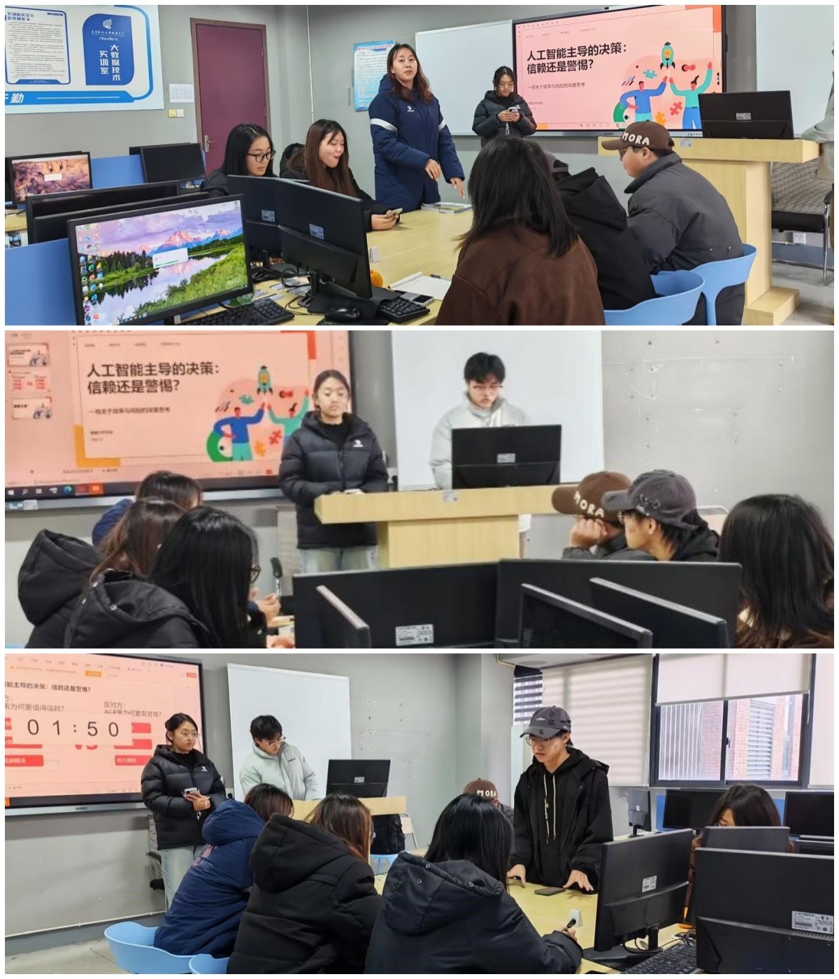 活动伊始,指导老师以全会精神为引领开场,强调青年学子应思考技术革新与国家治理的辩证关系。辩论赛围绕核心议题展开,正反双方分别从人工智能赋能国家治理的优势、技术应用的潜在风险切入辩论,自由辩论环节聚焦伦理边界、制度规范等关键问题,展现出对科技与社会发展的深度思考。