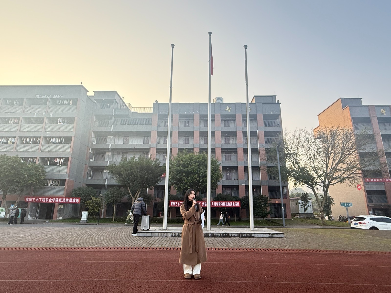 此次升旗由团总支书记、辅导员钟昌嫔作国旗下的讲话。钟老师在讲话中深刻阐述了从“法制”到“法治”的时代内涵,并围绕新时代大学生的使命担当,提出了三点殷切期望:第一,以法为信仰,做尊法崇法的先行者。她呼吁同学们将法治精神内化为价值追求,筑牢成长的法治根基。第二,以法为准则,做学法守法的示范者。她指出,遵守校纪校规、恪守学术道德、文明网络言行皆是践行法治精神的具体体现。第三,以法为铠甲,做用法护法的捍卫者。她鼓励同学们要勇于运用法律武器维护权益、捍卫正义,并积极参与普法志愿服务。