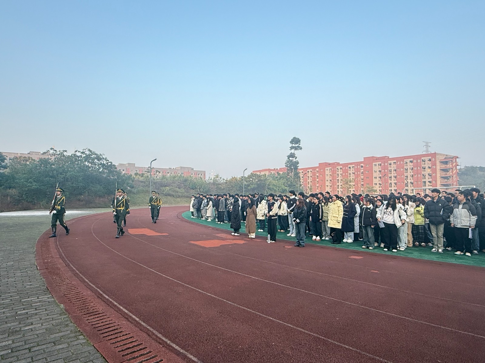 2025年11月24日早上8:10,第十三周“双周一”升旗仪式暨国旗下讲话主题教育由数字经济学院在学校田径场开展,其内容为:《弘扬法治精神,争做法制青年》,此次主题旨在国家宪法日暨全国法制宣传日来临之际,深化法治宣传教育,引导广大学生树立法治信仰。